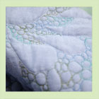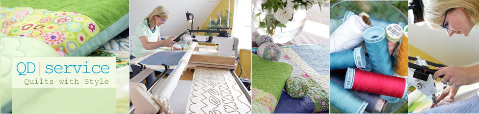 | Eine Longarmmaschine ist eine Industrienähmaschine, die so auf einem Gestell aufgebaut ist, dass sie sich in alle Richtungen frei bewegen lässt. Dieses Gestell erlaubt in meinem Fall Quilts bis zu 2,30 m Breite zu quilten. Dabei werden die drei verschiedenen Lagen auf die Walzen des Gestells aufgespannt – der mühselige Schritt des Heftens fällt weg – und die Nähmaschine wird dann so geführt, dass man mit der Nadel die Muster auf den Stoff „schreibt“. |